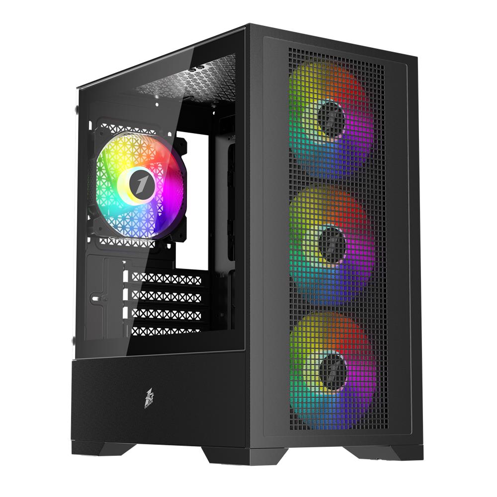 1ST Player Trilobite T3 Siyah 600W 80+ ARGB 4x12cm Fan Temperli Cam Mesh USB 3.0 mATX Kasa