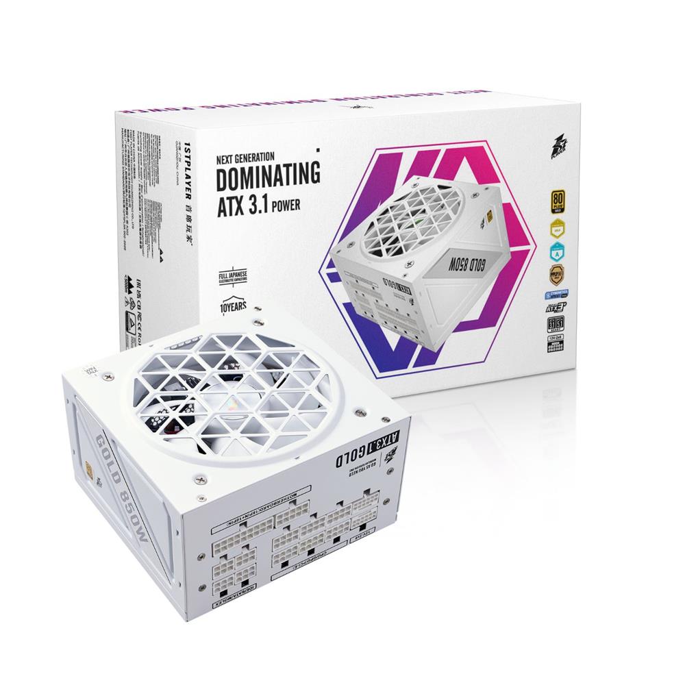 1ST PLAYER NGDP 850W 80+ GOLD ATX3.1/PCle 5.1 JAPON KAPASİTÖR FULL MODÜLER APFC 10 YIL GARANTİLİ BEYAZ GÜÇ KAYNAĞI