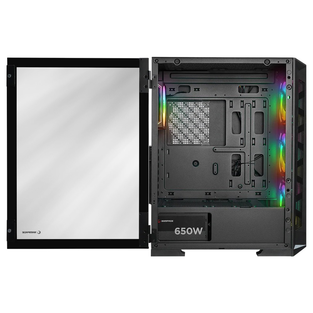 RAMPAGE GLARE Mesh 650W 80+ Siyah 4*12cm ARGB Fan Manyetik Temperli Camlı ATX Mid-T Gaming Bilgisayar Kasası