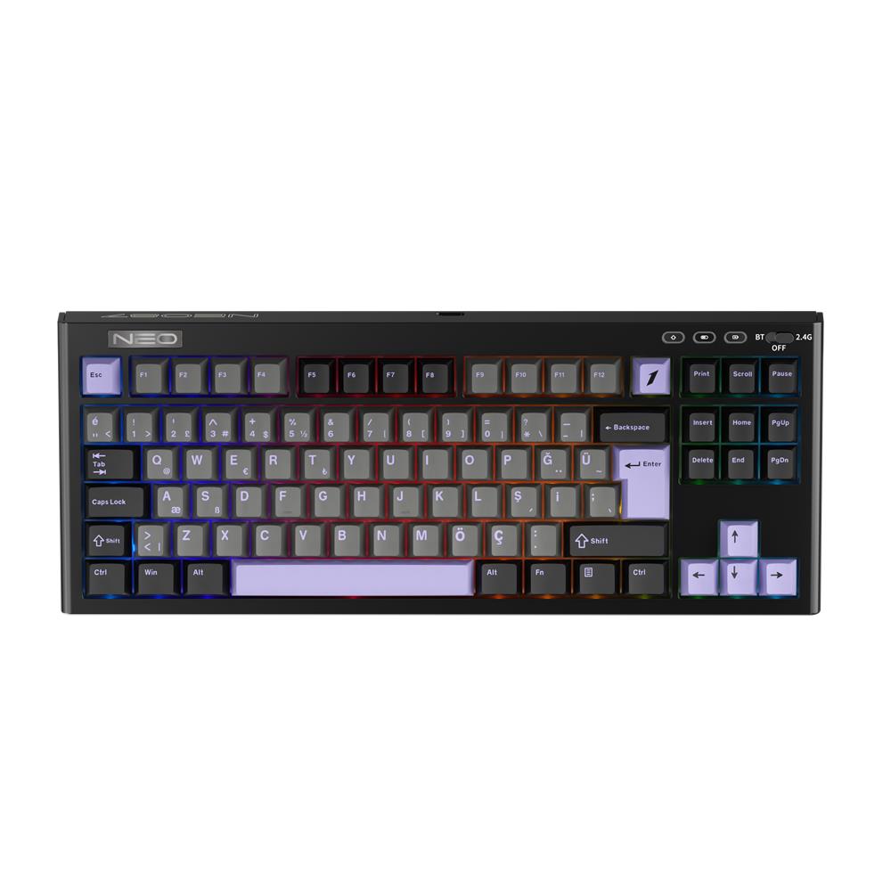 1ST PLAYER NEO87 TKL Siyah RGB Lavender Switch Hotswap Kablosuz Wireless + Bluetooth Türkçe Mekanik Oyuncu Klavyesi
