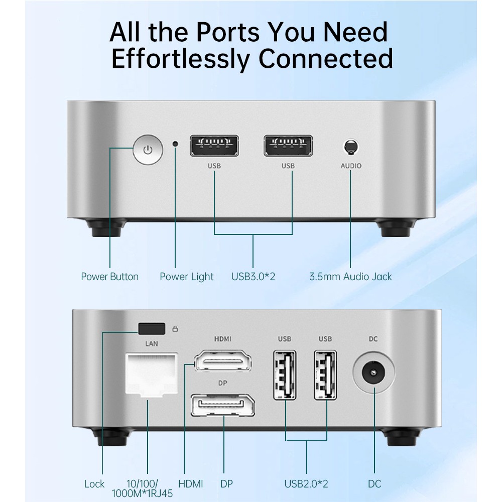 LEADERHUB LP1C ALDER LAKE-N N100 3.4GHZ 8GB DDR4 3200MHZ 512GB NVME M2 SSD WIFI+BT HDMI+DP MİNİ PC
